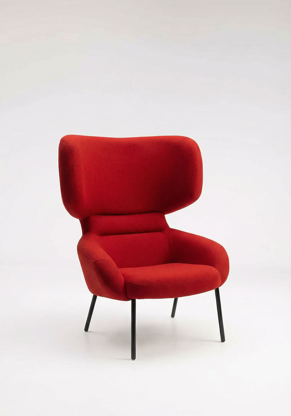 The visuals explore the intersection of fashion and furniture, treating the "cinched waist" of the chair as a sculptural form.